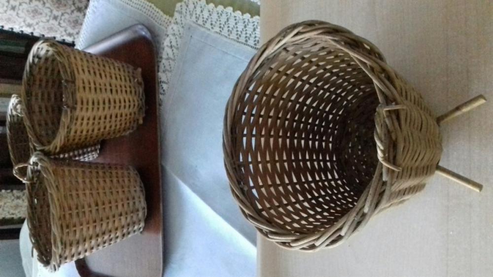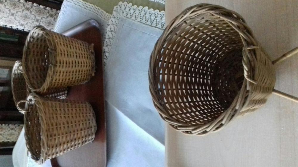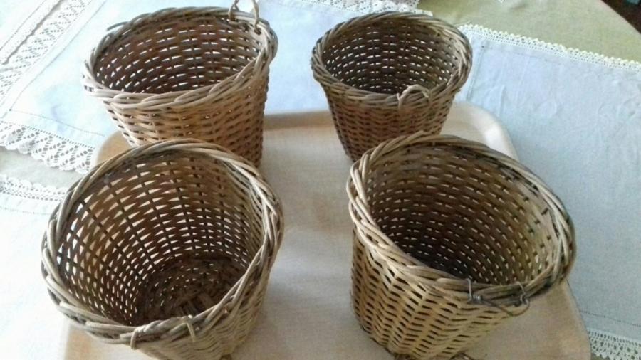 4 pletené košíčky, vhodné pro dekoraci (průměr vrchní 16cm, dna 10cm, výška 14cm. Cena dohodou.