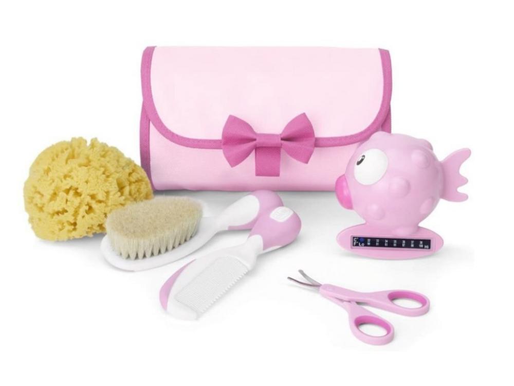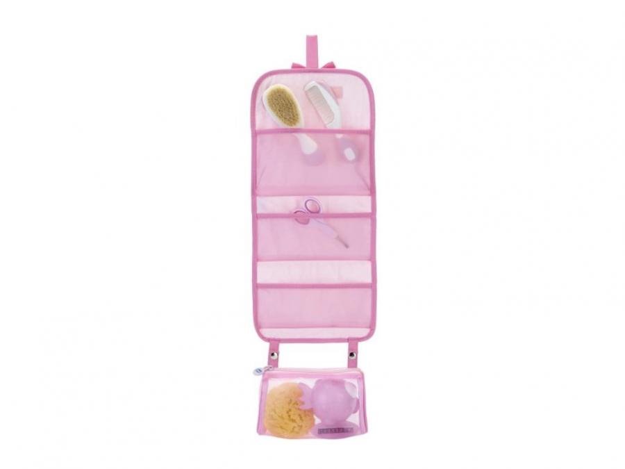 5-ti dílná sada praktických pomůcek péče o dítě. Sada obsahuje potřebné produkty pro péči o děti . Skládá se z hřebenu, měkkého kartáče, teploměru, přírodní houby a nůžek . Praktická taštička s úložnými kapsami . Možnost zavěšení v koupelně nebo dětském pokoji. Minimální věk: 0 měsíců.