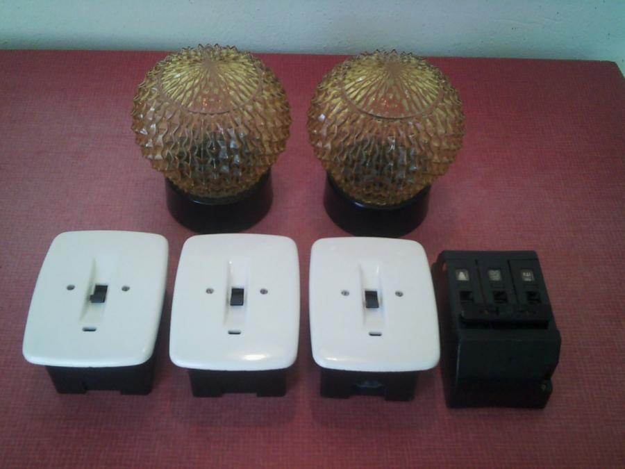 Tři nové ABB sporákové vypínače, interiérový bílý s doutnavkou, zapuštěný pod omítku pro napětí 400V s inst. krabicí. Původní cena 690 Kč/kus, nyní cena 300 Kč/kus. Prodej jednotlivě nebo dohromady 3 vypínače za cenu 900 Kč. Prodám SEZ trojfázový jistič 16A, charakteristika vedení napětí - ITV 500V, vyráběný bývalým podnikem SEZ Krompachy.Cena nabídkou. Prodám 2 nová světla do domácnosti, vhodné do koupelny, toalety, sklepa. Cena dohromady 600 Kč, možno jednotlivě 300 Kč/kus. SEZ jistič je prodán.