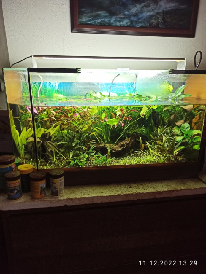Prodám akvárko 150l, d. 80cm, š. 35cm, hl. 40cm s filtrem a světlem. Cena 1.800 Kč.