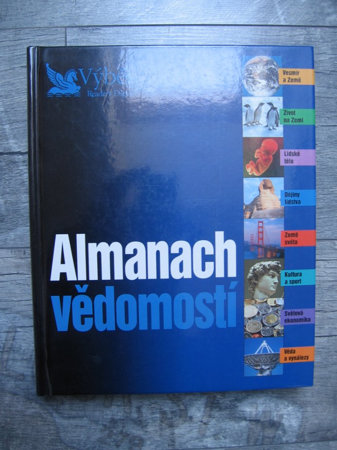 Nabízím luxusní naučnou knihu "Almanach vědomostí" od Reader´s Digest. Chcete si rozšířit zeměpisné znalosti? Zajímá vás nejvyšší vodopády, nejdelší řeky či nejvyšší budovy? Znáte klíčová data světových dějin od dávnověku po dnešek? Kdy byl uskutečněn první televizní přenos? Kdy odstartoval první raketoplán? Proč vymřeli dinosauři? Pro milovníky vědomostí. Kniha je vázaná, lamino, plná barevných fotek, ilustrací, křídový papír (těžká), nová (nikdy nečtená, nevhodný dárek), Praha, 2003, I. vyd.