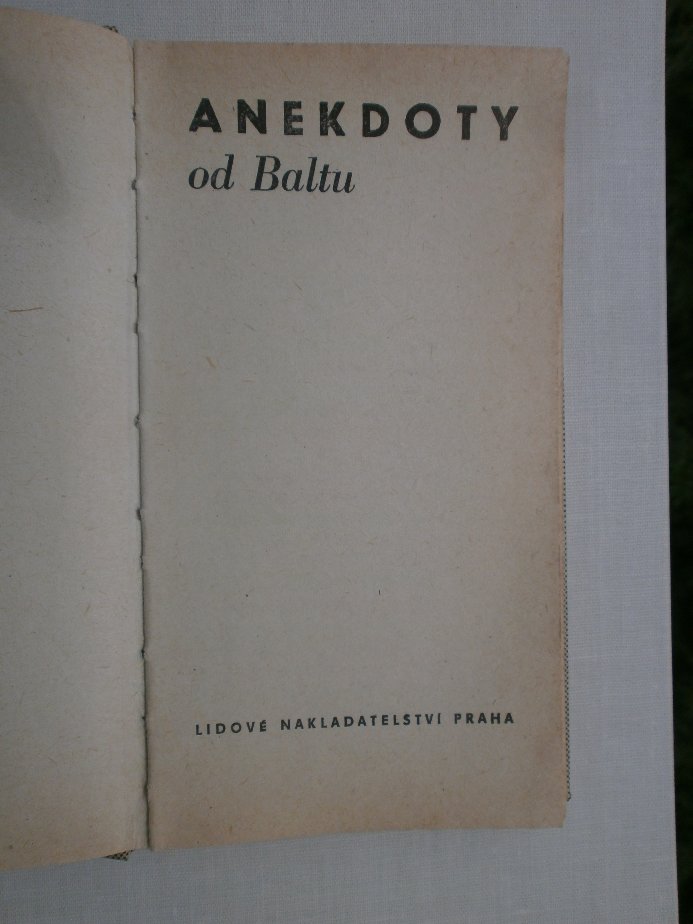 Anekdoty od Baltu. Anekdoty - vtipy - humor. Ilustrace Adolf Born. Z litevských originálů vybral a uspořádal Jaroslav Trobl. Praha, Lidové nakladatelství 1975, 95 stran, 1. vydání. EDICE: Anekdoty, svazek 34. Výška 17 cm, šířka 9,3 cm. Vázaná kniha, na obálce je lamino. Kniha je velmi zachovalá, k předání kdekoliv v Praze, nejlépe v centru. Příp. dovezu v dosahu městské hromadné dopravy, cena 29 Kč.