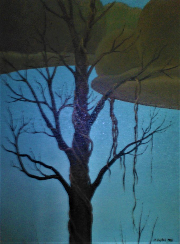 Antonín Vojtek, Strom, olej na plátně, 1996, rozměry bez rámu 50 x 65 cm. 45.000 Kč.