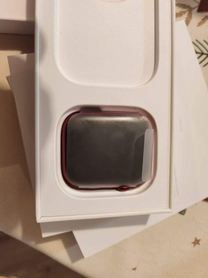 Nové nepoužívané Apple Watch 7, červené v záruce do roku 2024. 10.000 Kč.