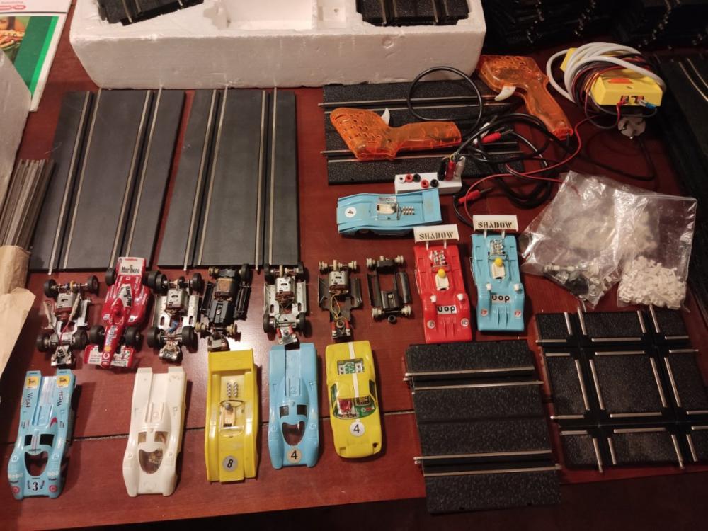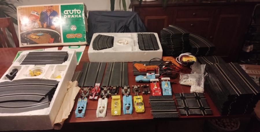 Prodám komponenty k autodráze Ites - 2x přechodový díl 75-90, 1x křižovatka, 3x 1/2 rovinky, 1x trafo Ites, 2x ovladač Parma, 1x napájecí díl, 19x rovinka, 9x autíčka(vis foto), 4x křížení, 10x zatáčka mírná, 23x zatáčka ostrá, 1x autodráha 90, 1x autodráha 75. Prodám jako celek nebo dle dohody. 8.000 Kč.