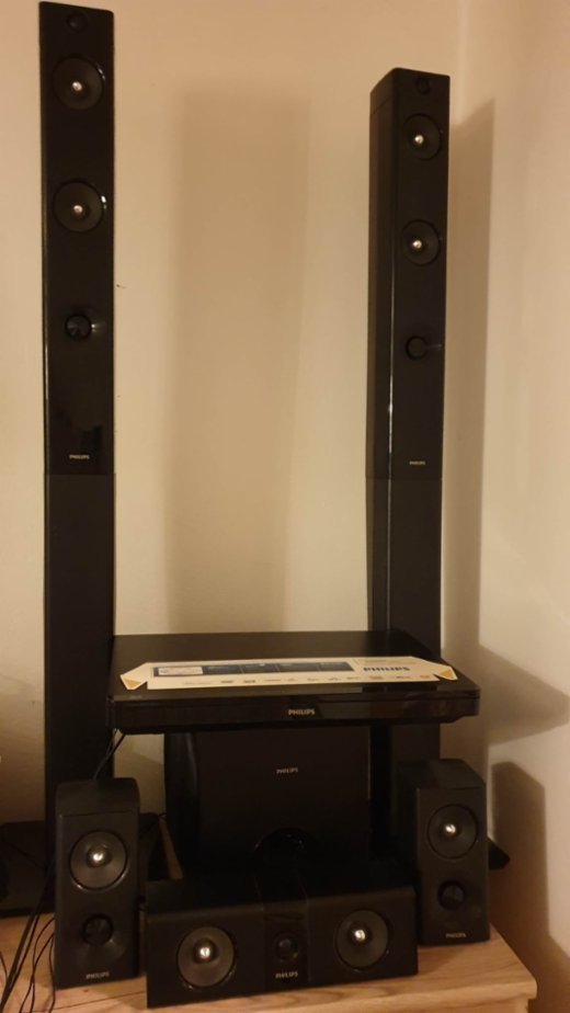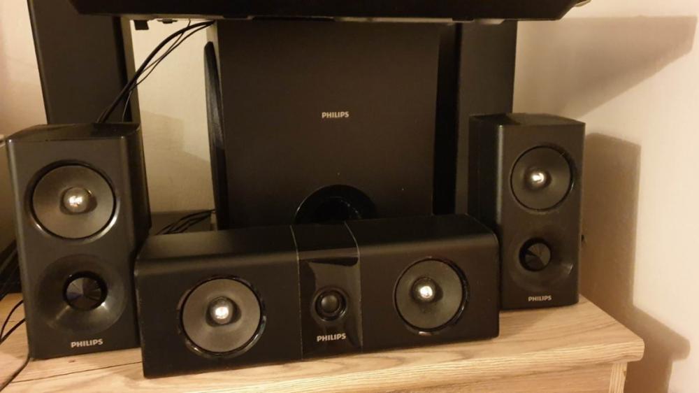 Prodám domácí kino Philips HTB5540D/12 s prostorovým zvukem Dolby Digital 5.1: 2 x vysoký reproduktor, 1 x středový reproduktor, 2 x satelitní reproduktor a subwoofer, celkový výkon RMS 1000 W. Přehrává 3D Blu-ray i vypalované a originální DVD, disponuje USB, HDMI, optický vstup, dálkový ovladač, Wi-Fi, Bluetooth, MP3, WAV, obrázky a rádio FM. Vše funguje, skvělý stav + přidám dva Blu-ray filmy. Jen osobní odběr, Praha.
