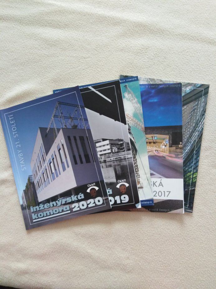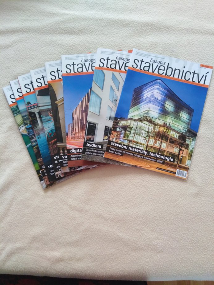 Stavebnictví - jednotlivá čísla 2013, 2014, jedno číslo 2017, ročníky 2018 až 2022 téměř kompletní; dále ročenky Inž. komora 2014,17,18, 19,20 - za odvoz.