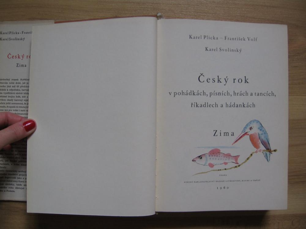 Nabízím krásnou knihu pro děti a mládež "Český rok v pohádkách, písních, hrách a tancích, říkadlech a hádankách", poslední IV. díl - ZIMA. Autoři: Karel Plicka, František Volf, Karel Svolinský (krásné barevné ilustrace). Kniha byla čtená, ale je zachovalá. Pevná vazba, papírový přebal (ohmataný, v jednom rohu 1,5 cm natržen), vyšisovaný sluncem přebal. Rok 1960, 1. vydání, 429 stran, Státní nakladatelství krásné literatury, hudby a umění. Praha. 99 Kč.