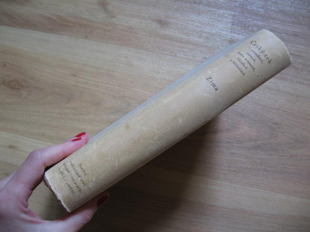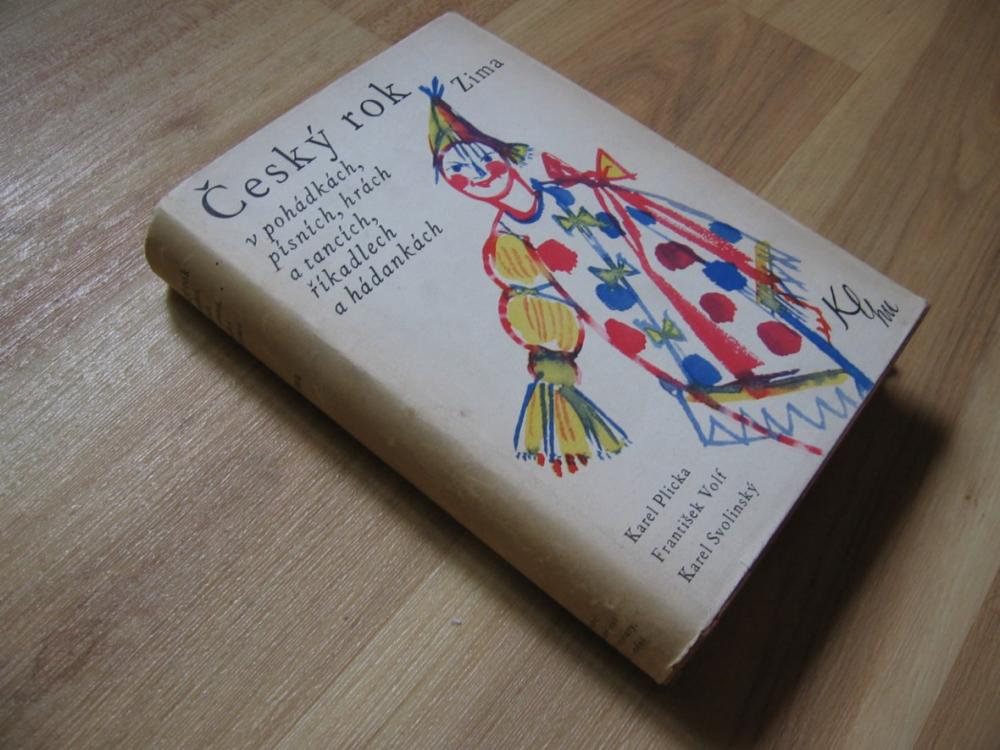 Nabízím krásnou knihu pro děti a mládež "Český rok v pohádkách, písních, hrách a tancích, říkadlech a hádankách", poslední IV. díl - ZIMA. Autoři: Karel Plicka, František Volf, Karel Svolinský (krásné barevné ilustrace). Kniha byla čtená, ale je zachovalá. Pevná vazba, papírový přebal (ohmataný, v jednom rohu 1,5 cm natržen), vyšisovaný sluncem přebal. Rok 1960, 1. vydání, 429 stran, Státní nakladatelství krásné literatury, hudby a umění. Praha. 99 Kč.