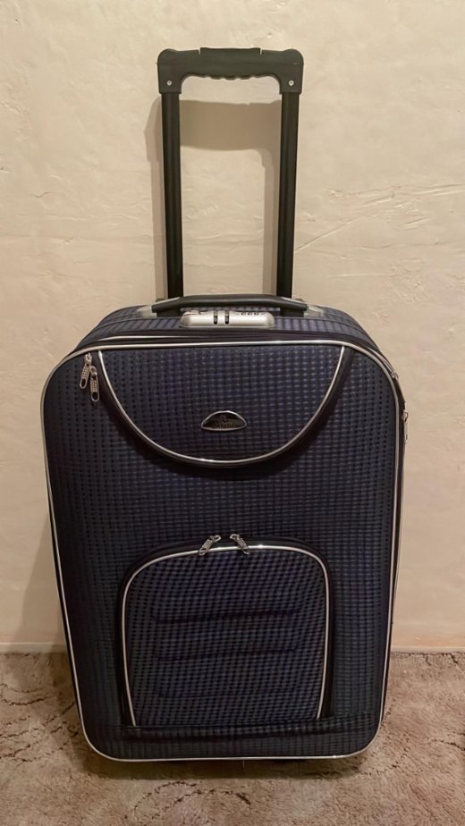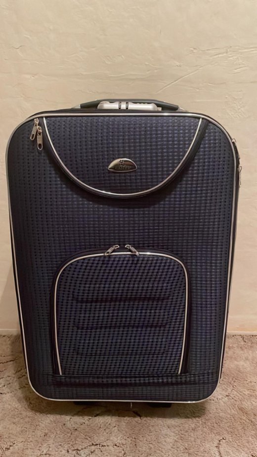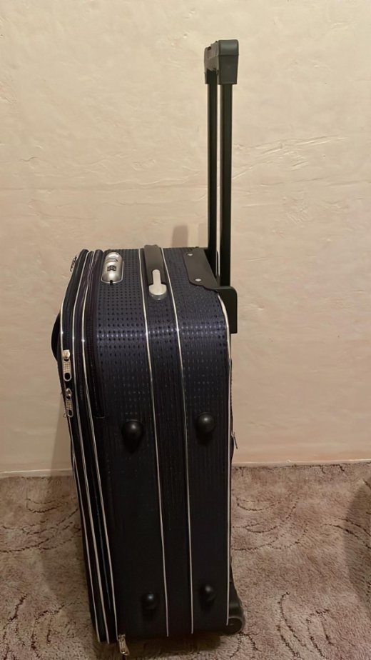 Cestovní kufr, rozměry výška 65 cm, šířka 40 cm, hloubka 20 - 25 cm. Cena 200 Kč.