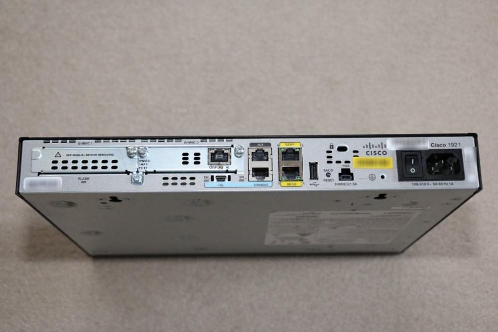 Router Cisco 1921/K9. Směrovač se dvěma EHWIC sloty, Gigabit Ethernet WAN/LAN port, Cisco IOS, 512MB RAM, 256MB Flash, USB port, USB console port, Serial console port, Serial auxiliary port. Osazen kartou Cisco VWIC3-1MFT-T1/E1 (Cisco Third-Generation 1-Port T1/E1 Multiflex Trunk). Používaný, plně funkční, po továrním resetu. Cena 11.000 Kč (7.000 Kč (router) + 4.000 Kč (karta), lze i odděleně].