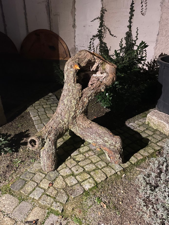Dekorace zahrady. Symbol plodnosti - samorost, ovocný strom - jabloň. 5.000 Kč.