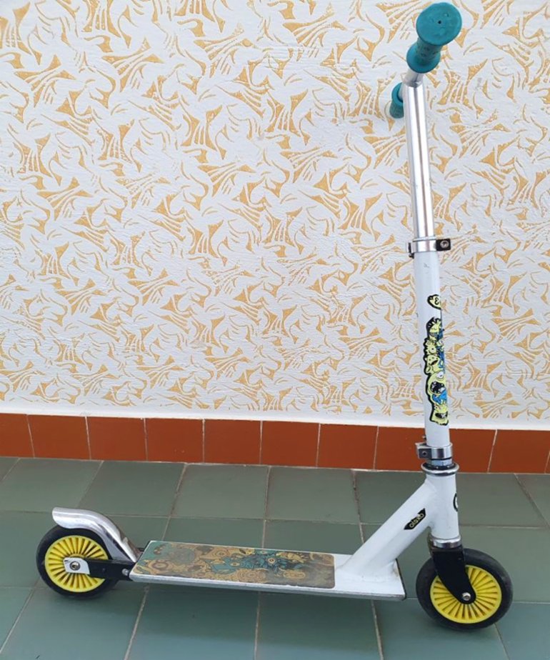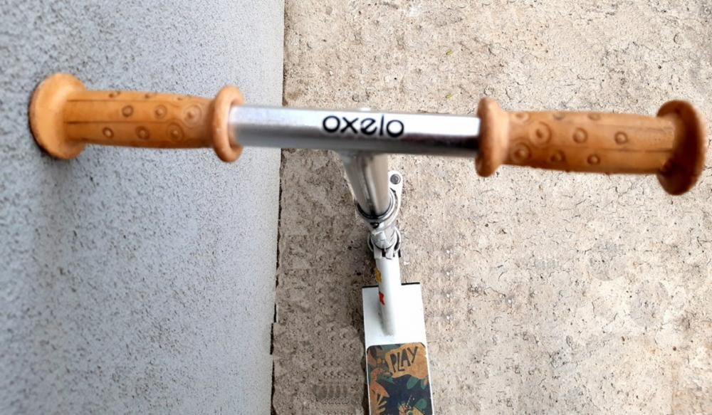 Dětská koloběžka Oxelo. Je skladná a pohodlná. Pro děti měřící 110 až 150 cm. Cca od 5 – 9 let. Možnost snížení, nebo vyvýšené přední části - řídítek. S nožní brzdou pro lepší a snadnější kontrolu rychlosti. Odolná a rychlá díky velkým kolečkům (120 mm). Dá se rozložit. PC 1.500 Kč, nyní 490 Kč. Brno.
