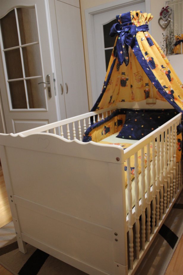 Krásnou velkou dětskou postýlku v bílé barvě o velikosti 144x78cm, roste s dítětem, lze po odebrání příček přeměnit na postel, včetně kokosové matrace. Odvoz Praha 5 Barrandov. 1.900 Kč.