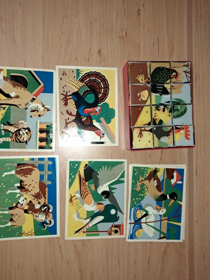 Dětské obrázkové kostičky, které se dají poskládat do vícero obrázků (viz foto). Používané, avšak v dobrém stavu. Cena 120 Kč.