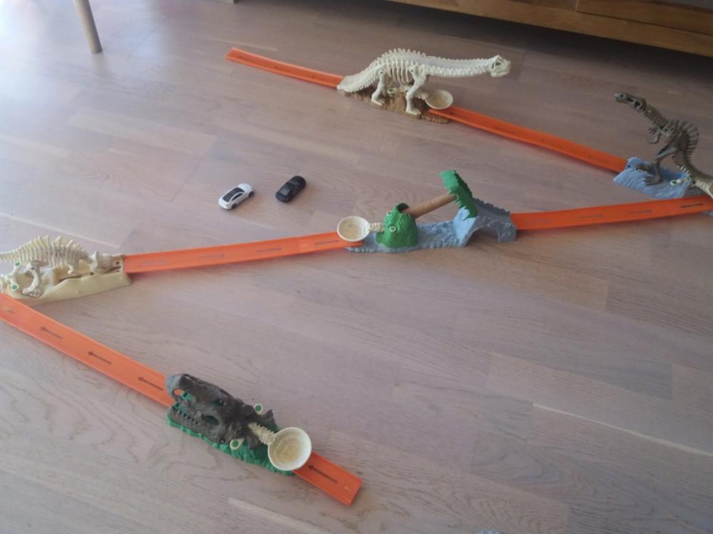 Plastovou dráhu na autíčka Hot Wheels T-Rex Attack + 2x zdarma 2 autíčka (viz foto). Původní cena: 1090 Kč.