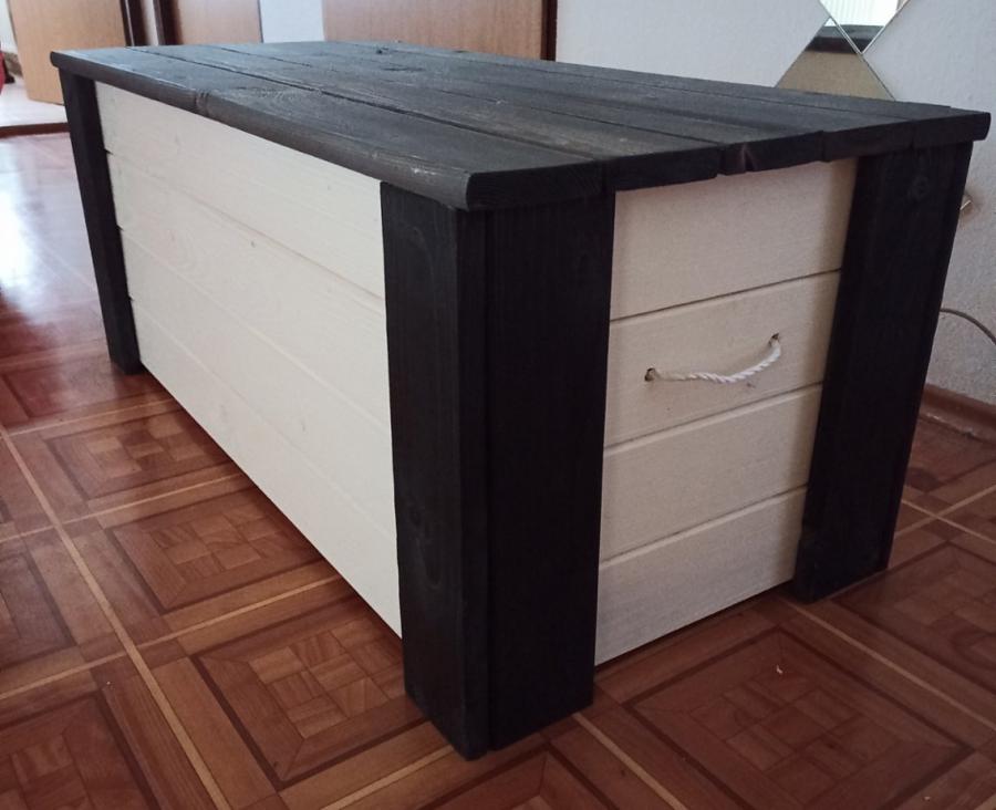Prodám dřevěnou truhlu, materiál smrk. Nepoužitá. Vhodná jako úložný prostor. Je možné na ní sedět. Vyrobeno z vysušeného dřeva. Rozměry d: 100, š: 45, v. 42cm. Cena bez laku 2.200 Kč. Jiný rozměr, nebo lak než je na fotkách, jen po dohodě. Může být i na kolečkách. Osobní odběr, nebo zaslat.