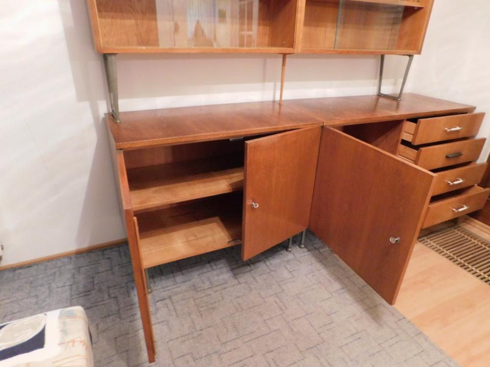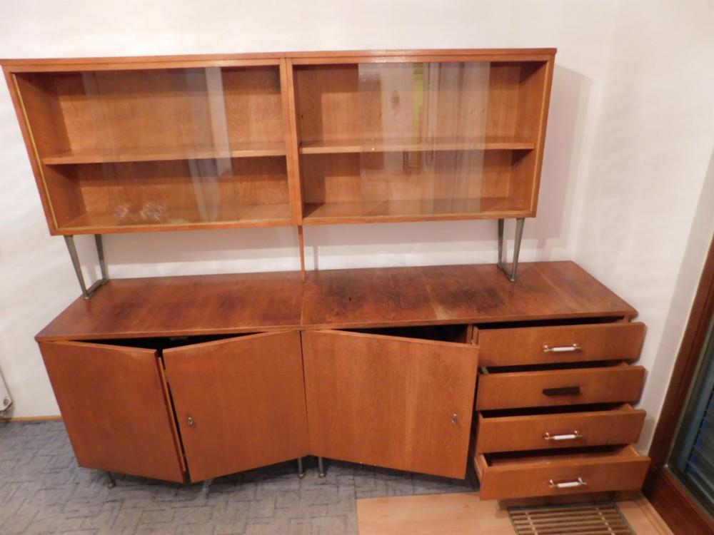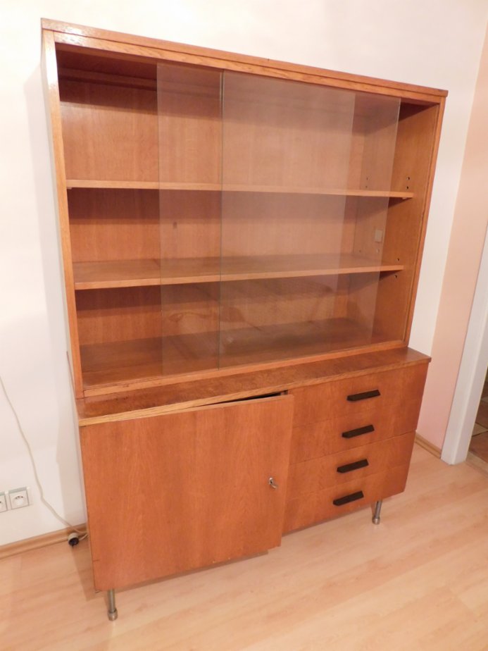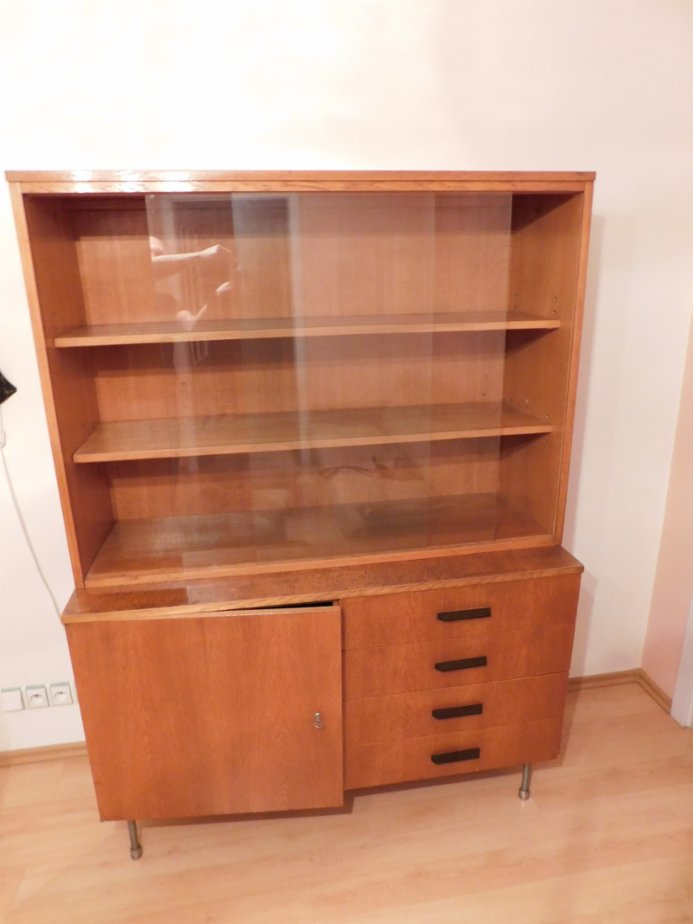 Prodám pěkný dřevěný sektorový nábytek, dobrý stav. 1. Skleník s komodou – VxŠxH: 120x165x48 cm. 2. Šatní skříň s nástavbou - VxŠxH: 250x118x60 cm. 3. Peřiňák (drobné poškození povrchu dvířek vpravo dole) - VxŠxH: 97x77x47 cm. 4. Knihovna 2x s komodami - VxŠxH: 164x207x48 cm. Prodám i po jednotlivých kusech. Důvodem prodeje je prodej bytové jednotky. Nutnost vlastního odvozu (Praha 3). Prodejní cena 490 Kč za každý jednotlivý kus. Tel.: každý den po 14-té hodině včetně víkendů.