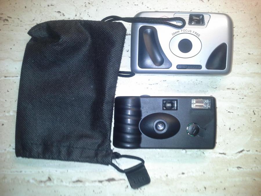Dva jednorázové fotoaparáty s klasickým filmem uvnitř, připraveny k okamžitému použití, s brašničkou. Zachovalé, jako nové. Vhodné k fotografování jak ve venkovním prostředí, tak i uvnitř. Film je na 27 fotografií a dá se vyměnit. S bleskem. 35mm focus. I jednotlivě. Cena dohodou.