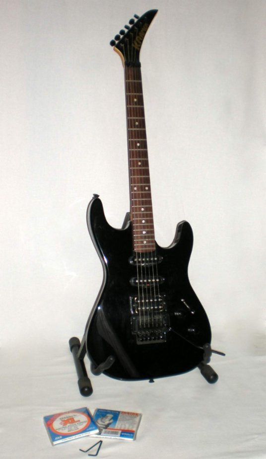 Prodám el. kytaru Kramer. Dvojzvratné tremolo Floyd-Rose patents + zámky. Kytara je pěkná, neohraná, málo používaná. Drobné kosmetické nedostatky se jistě najdou. Plně funkční, super zvuk! Ke kytaře přidám zdarma 2x nové struny D´Addario Floyd-Rose a sadu 2 klíčů k nastavení zámků a tremola.