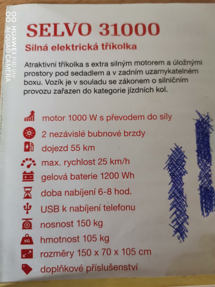 El. tříkolku najeto 150km, 1000W, 3kvalt, cena 30.000 Kč.