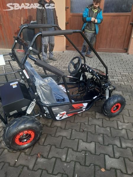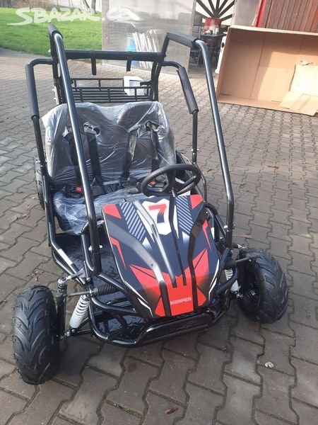 Elektro Buggy Sunway Dune 1000W 60V 20AH. Motor 60V DC motor brushless . Výkon motoru 1000W . Max. rychlost 30 km/h . Dojezd cca. 1,5hod. Doba nabíjení 6 - 8 hodin . Baterie 5x12V (20Ah) . Typ baterie Lead-acid . Řazení vpřed/vzad . Pohon řetěz . Pneu přední 145/70-6 Pneu zadní 16x8.00-7 . Brzdy zadní kotoučové . Palivo elektřina . Hmotnost 89kg . Max. nosnost 120kg . Rozvor 125cm . Světlá výška 16cm . Rozměry délka/šířka/výška 171 x 111,5. 45.990 Kč.