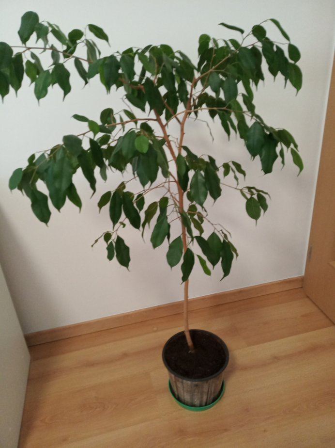 Prodám fíkus Benjamin, výška 120 cm, stáří 7 let, tvarovaný, přesazený do kvalitní kupované zeminy, nenáročná pokojová rostlina. Osobní odběr: Praha Chodov. 800 Kč.