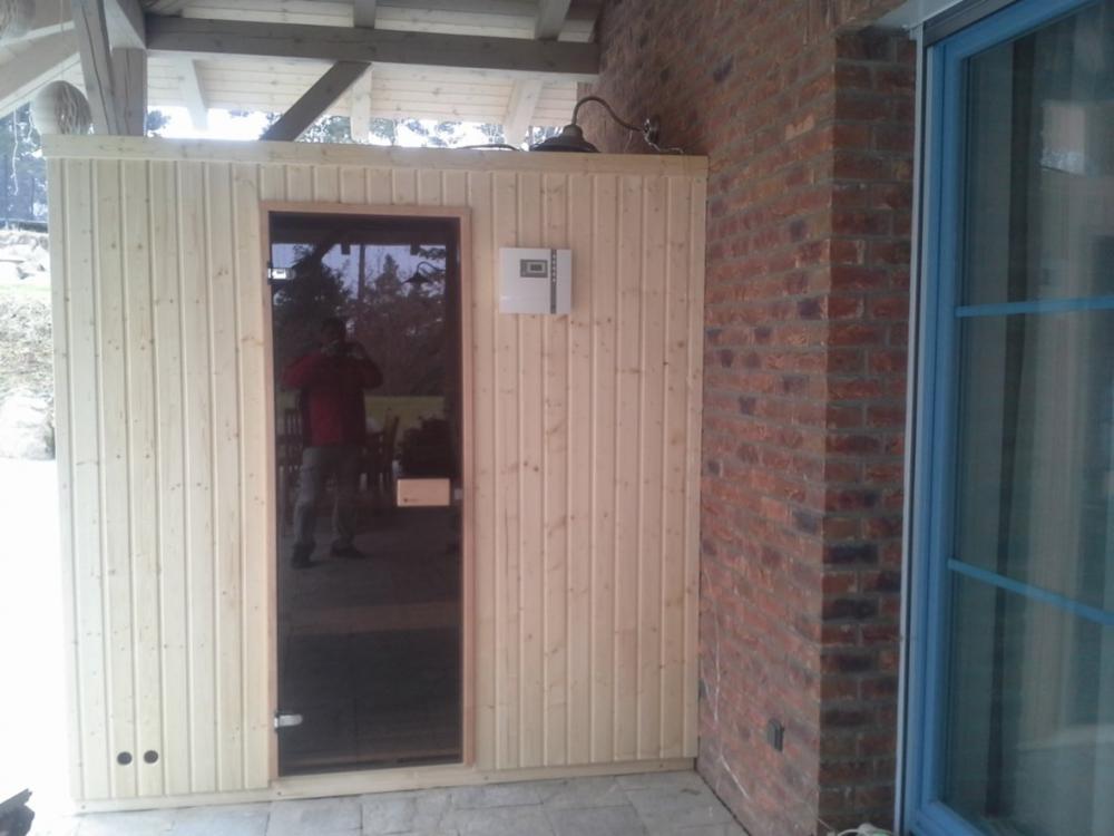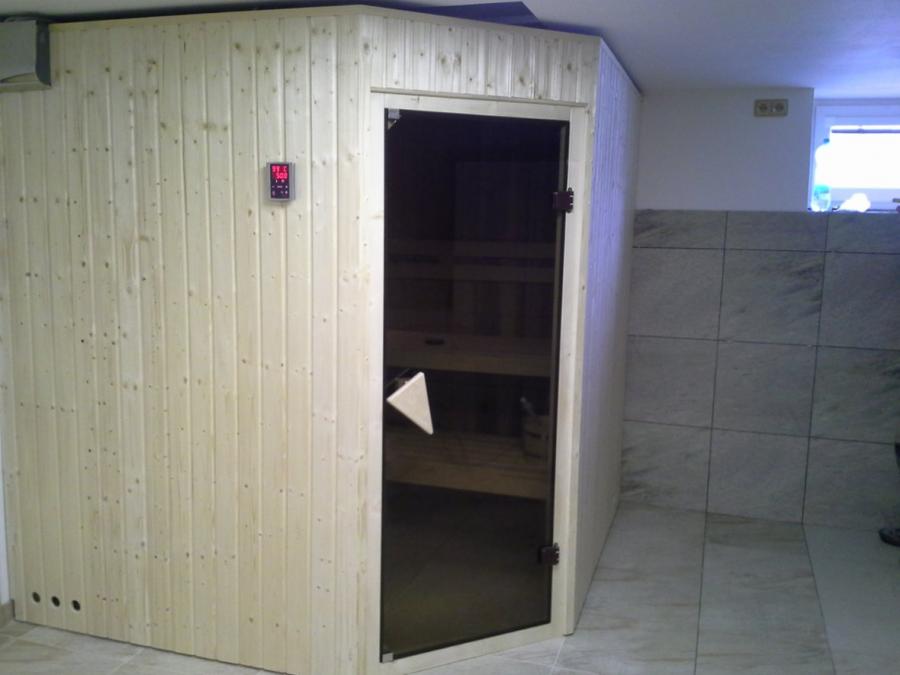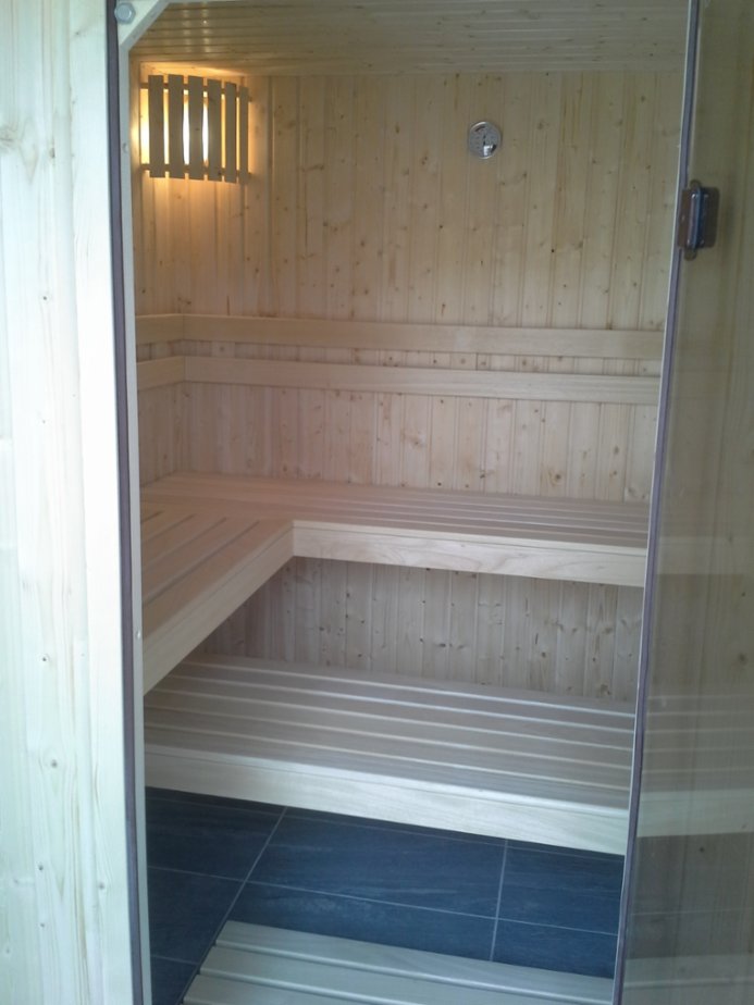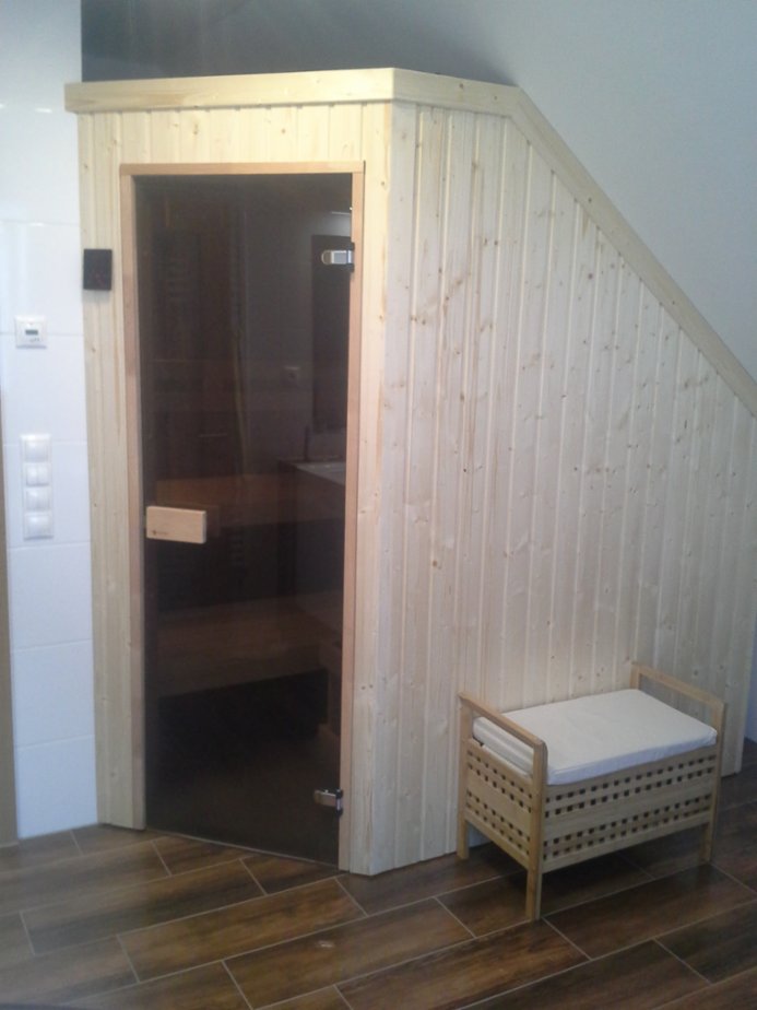 Domácí finská sauna, dvě pohodlná lehátka šíře 56 cm nad sebou. Rozměr sauny 200x150 cm. Přizpůsobení dle vašich dispozic dle místnosti. Materiál sauny severský smrk kval. A a lavičky z africké vrby abachi, kvalitní finská el. kamna s kameny s nastavením teploty a času zapnutí a automatickým vypnutím, skleněné dveře, osvětlení. Lze zajistit i jiné rozměry sauny. Může být ve větší koupelně nebo nevyužité místnosti. Odbornou montáž a dopravu po celé ČR zajistím. Celá ČR.