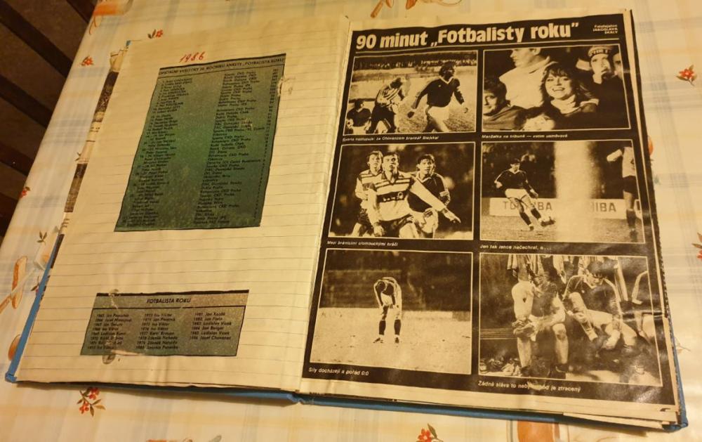 Fotbalové plakáty a články z roku 1986 nalepené v sešitu s tvrdými deskami. Cca 6 stránek. Předání Mnichovo Hradiště nebo Praha 6 Petřiny. 420 Kč.