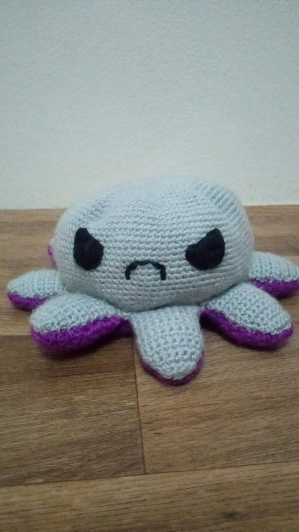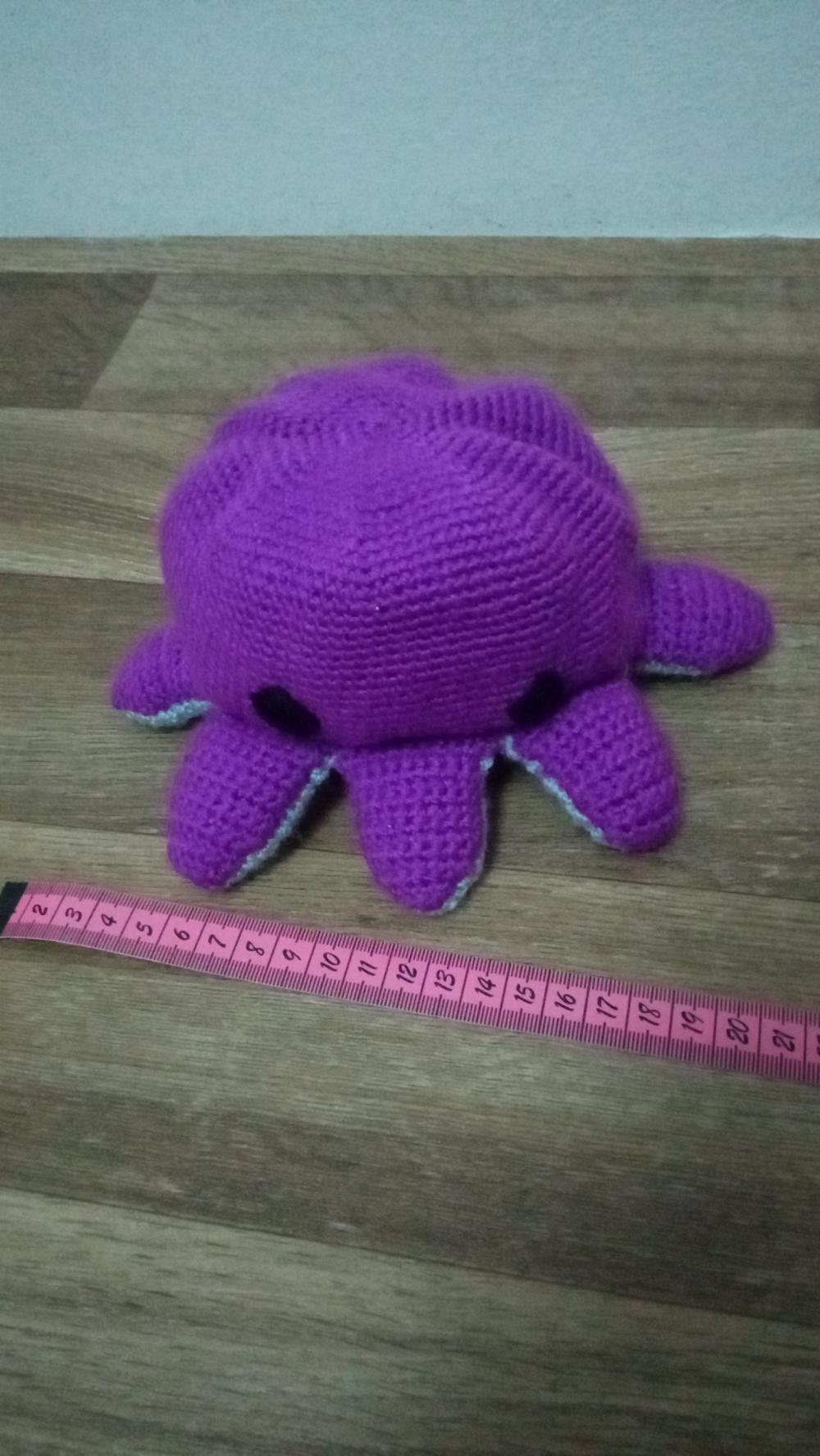Prodám ručně háčkovánou chobotnici. Obracecí Výška cca 10cm Šířka cca 20cm Vlna:Sonja Anti-Pilling Výplň:Duté vlákno