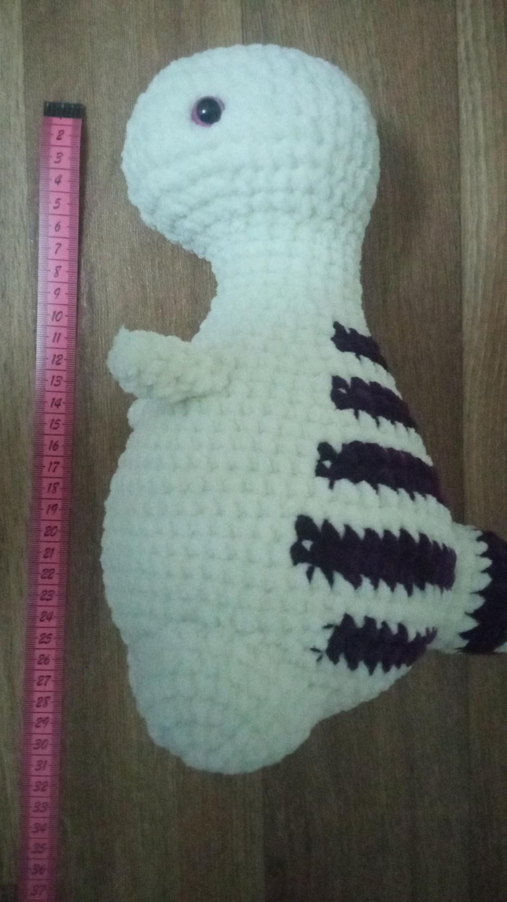 Prodám ručně háčkováného dinosaura Výška cca 30cm Šířka cca 15cm Šířka s ocasem cca 20cm Vlna:Himalaya Dolphyn Baby Výplň:Duté vlákno Lze prát