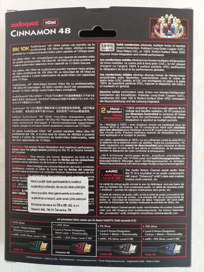 Prodám HDMI kabel Audioquest Cinnamon 48 v délce 1,5m. Kabel je jak nový, bez sebemenších známek poškození a zabalen v originální krabičce. Jsem první majitel. Konkrétní specifikace kabelu na webu. 3.600 Kč.