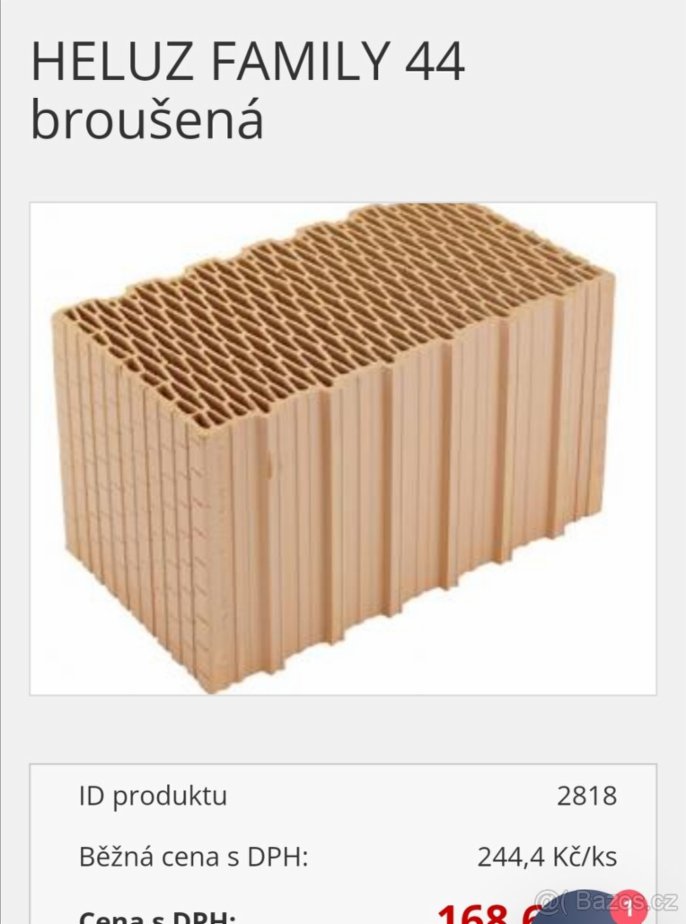 Broušené cihly Heluz Family 44. 72ks/paleta. Součástí je lepidlo/pěna, vyrovnávací malta Heluz Trend i palety. Cihly jsou na objednání - momentálně je doba dodání cca 8 týdnů. Jde objednat cokoliv od Heluz - překlady, Heluz family 2v1, Heluz family 25, 38.. Heluz UNI, příčky, atp.. Stačí poslat seznam a alespoň okres realizace - tak Vám vše co nejrychleji a nezávazně nacením. :-))