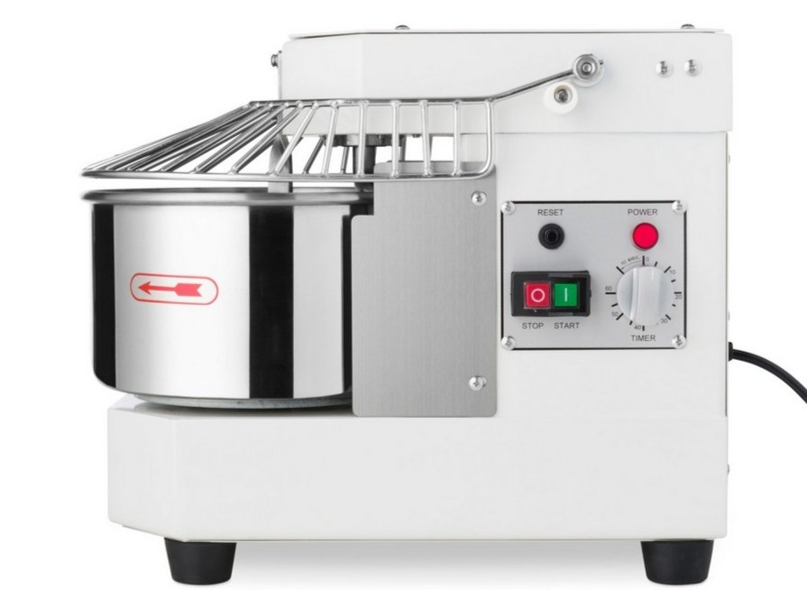 Prodám nový Profesionální Hnětač těsta MAXIMA 8 l cena 11.000 Kč. Stroj slouží pro přípravu lehkých a těžkých těst jako pizza, pirožky, bagety, langoše, chléb a knedlíky. Silný motor pohon klínovými řemeny. Kovové pouzdro s odolným povlakem. Miska z nerezavějící oceli o objemu 8,0 l, ø 21 x 16,5 cm. Misku nelze demontovat. Náprava a spirála z nerezavějící oceli. Rychlost spirály: 159 otáček za minutu. Rychlost mísy: 21 ot./min. Vybaven časovačem až na 60 minut a manuálním režimem.