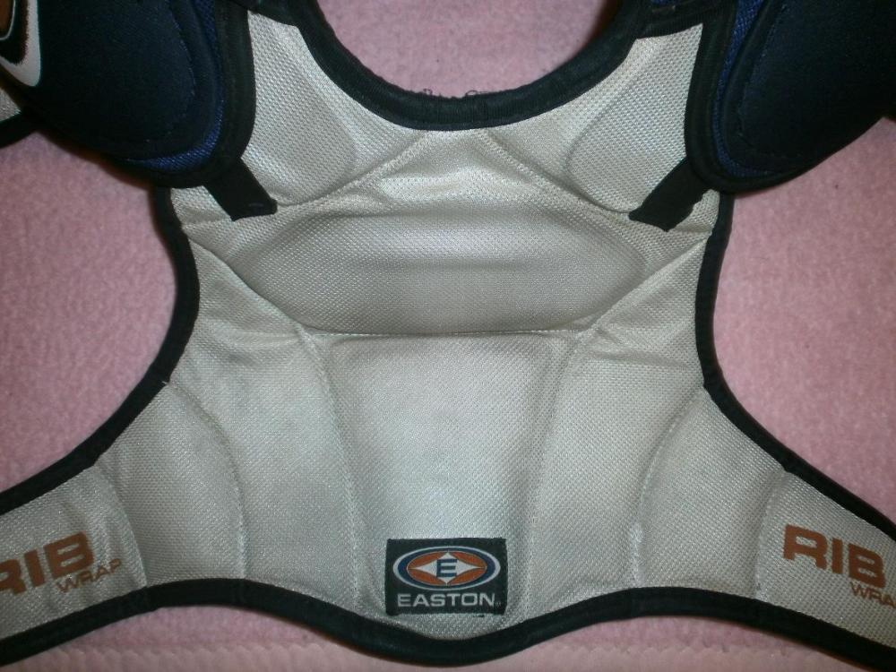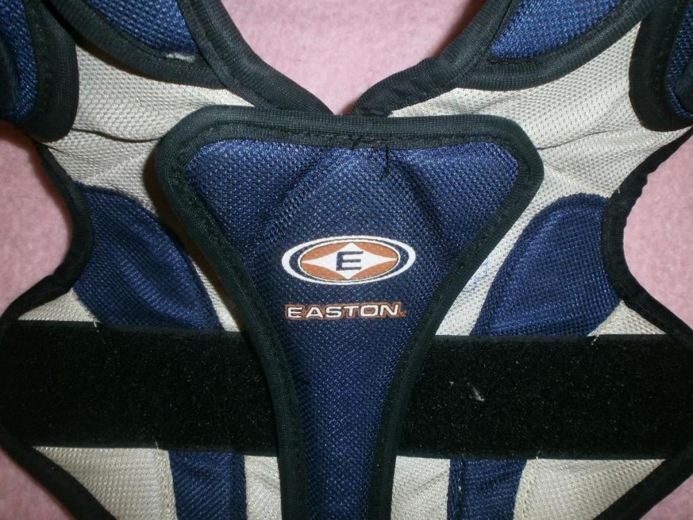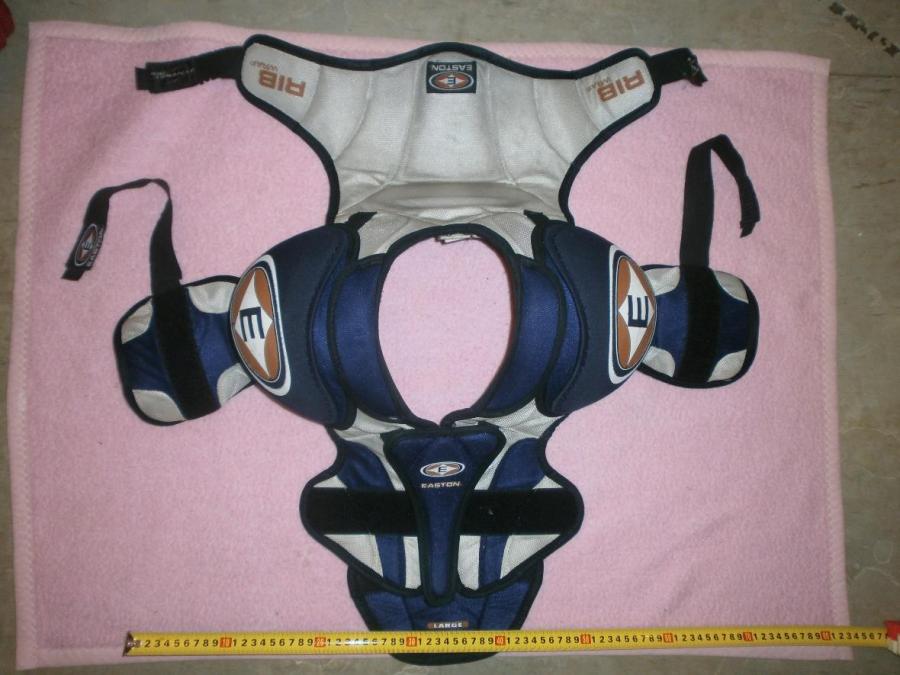 Hokejový chránič Junior, věk asi 9-12 let. Chránič ramen a hrudníku zn. OPUS - VHV, starší, bílý (150 Kč). Druhý chránič zn. Easton, modrobílý, krátce používaný, nepoškozený, vhodný jako dárek (490 Kč). Chránič krku - nákrčník - zn. Bauer, černý, jako nový, nepoškozený, vhodný jako dárek (290 Kč). Spodní kalhoty Sonic Shield DR, černé (190 Kč). Suspenzor 90 Kč. Nová tenká černá spodní kombinéza, dlouhý rukáv, nízký rolák (u krku na zip) tzv. termo prádlo (150 Kč). Dvoje štulpny zdarma.