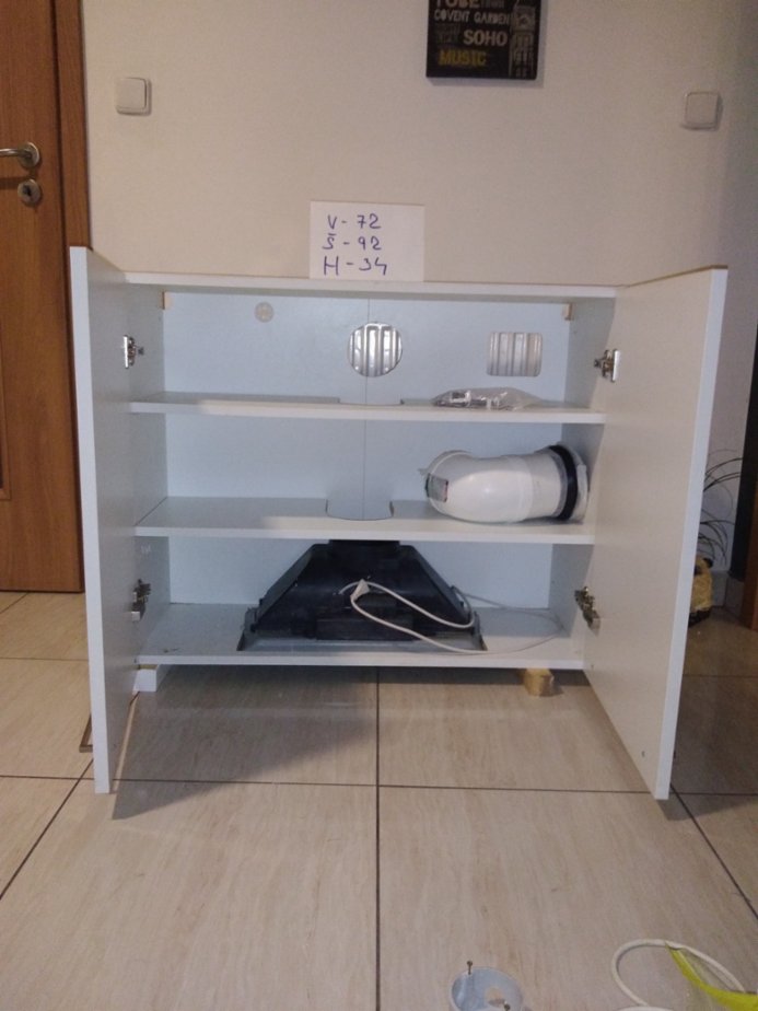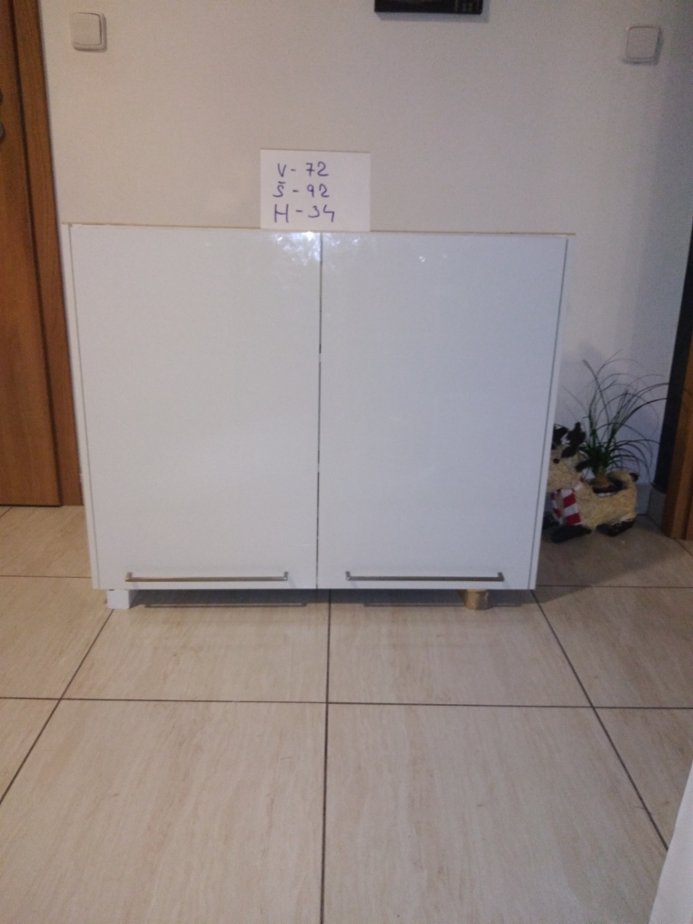 Horní kuchyňská skříňka s odsavačem par FRANKE, bílá, provedení lesk. výška 72 cm, šířka 93 cm, hloubka 34 cm. 2.999 Kč.