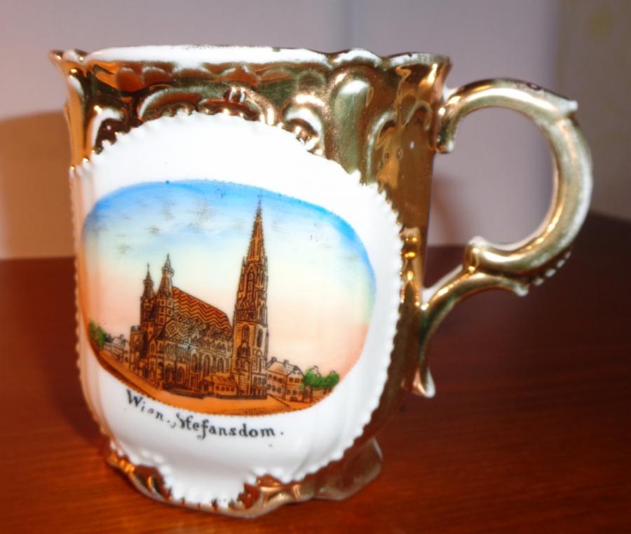 Hrnek po babičce z Vídně, cca z roku 1910, zlacený, s nápisem Wien, Stefansdom, ten je na něm vymalován, hezký, lehký, průsvitný porcelán, bez prasklin, hrany neotlučené, neznačený výrobce, váží 142 g, hrnek je vysoký 8,6 cm, cena je 450 Kč + přepravné.