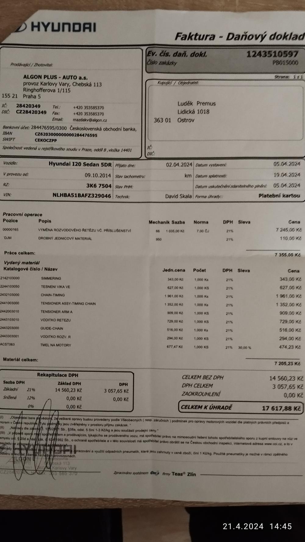 STK do 27.9.2024,kola 175/70 R14 84T, zimní pneu na ocelových rafcich, stáří 1rok, letní kola z lehkých slitin pneu stáří 1rok, každoroční servisní kontrola (filtry klimatizace, olejové, vzduchové, výměna oleje), minimální drobné oděrky laku,5.4.2024 provedena kompletní výměna rozvodového řetězu včetně příslušenství v autorizovaném servisu ALGON Karlovy Vary,mohu doložit frakturou, ukotvení dětské sedačky na zadních krajních sedadlech ISOFIX,vyrobeno v Turecku Istambul, poslední STK 27.9.2022 bez závad -mohu doložit zápisem, spotřeba se pohybuje v rozmezí od 4.8 do 5,5 l na 100km podle způsobu jízdy,spolehlivé vozítko ve městě a na středně dlouhé i delší cesty v ČR,foto dodám co nejdříve . Premus Luděk,773035820, PREMUSL@seznam.cz,volat prosím po 17.00 hod., děkuji ,o ceně samozřejmě můžem jednat, doporučuji auto vidět,projet se