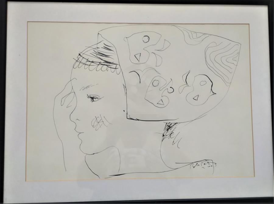 Jaroslav Blažek, Děvčica s čepcem, kresba, 48 x 34 cm, s rámem 61 x 47 cm.