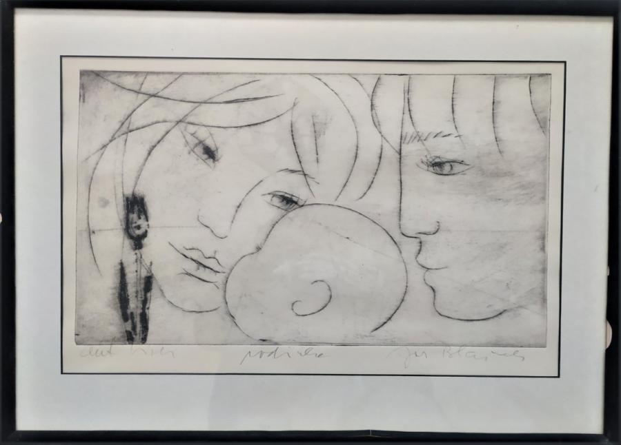 Jaroslav Blažek, Rodinka, tisk, 45 x 28 cm, s rámem 57 x 41 cm.