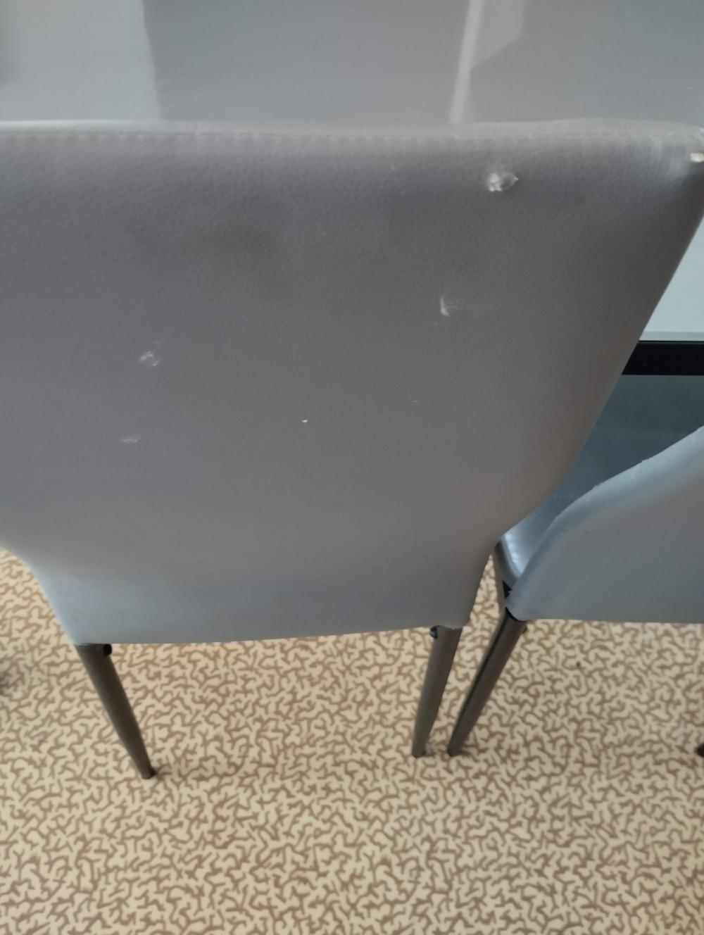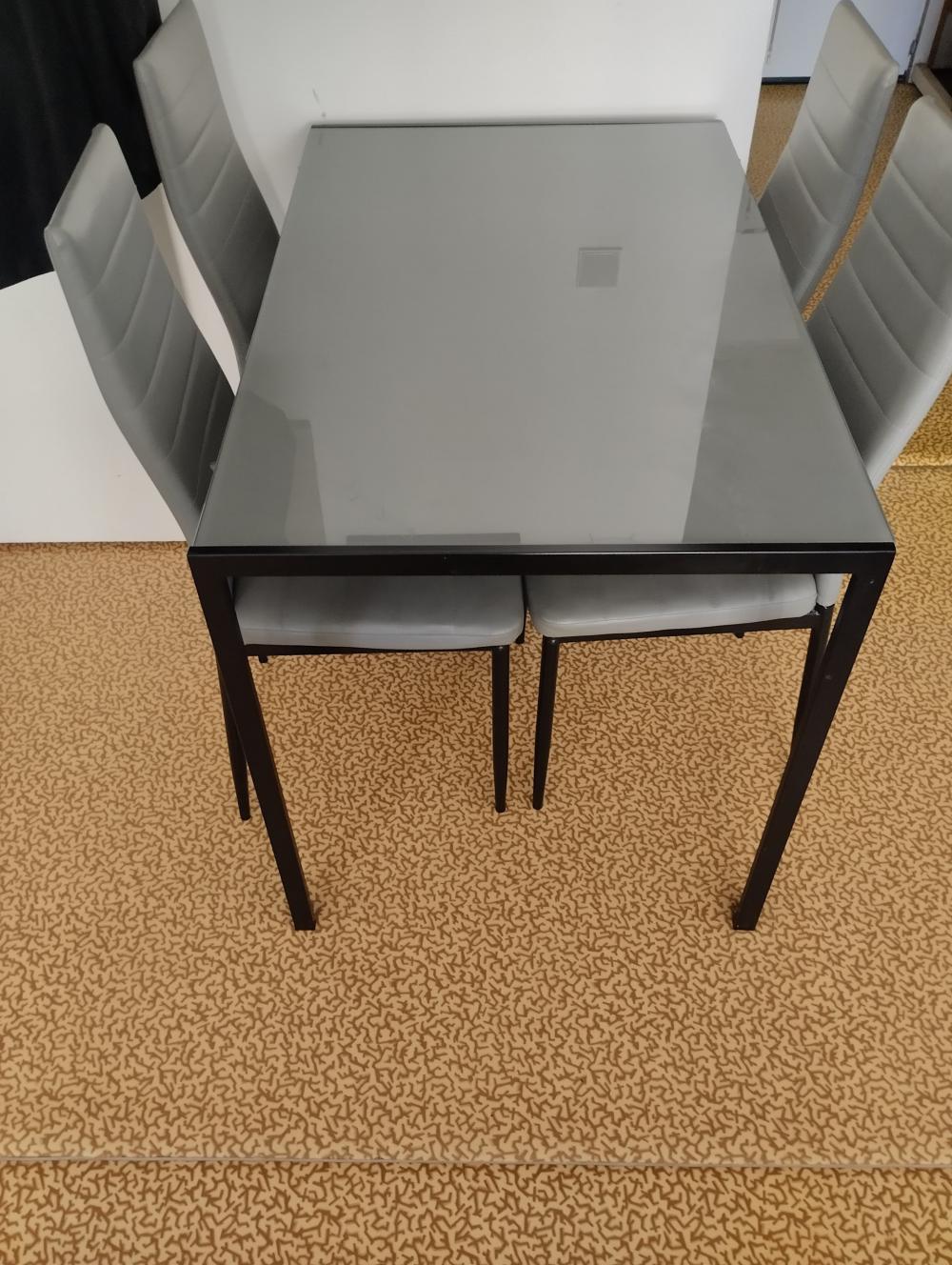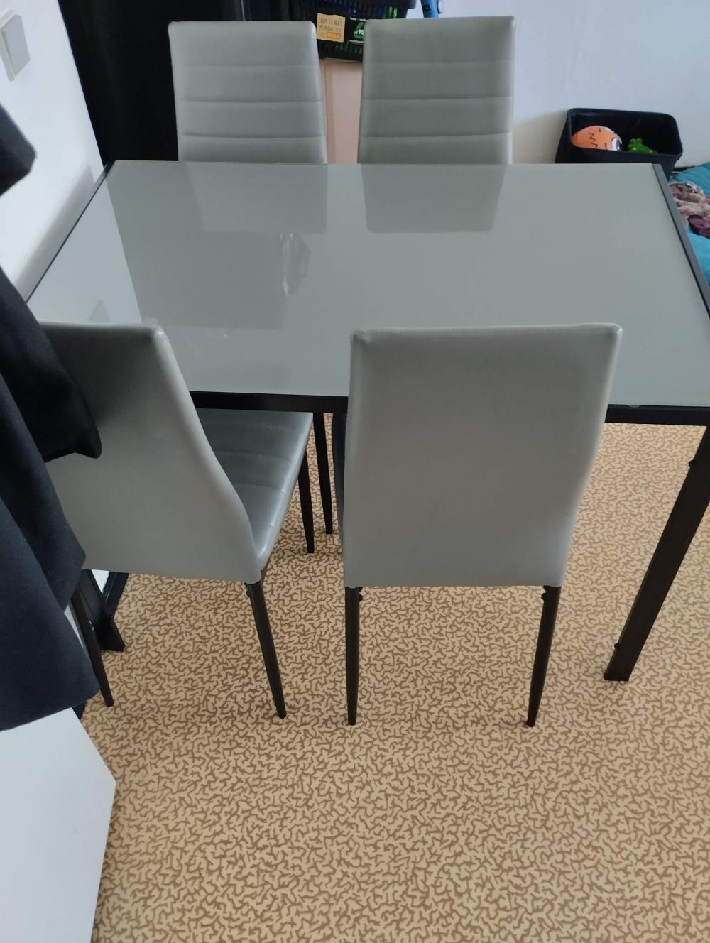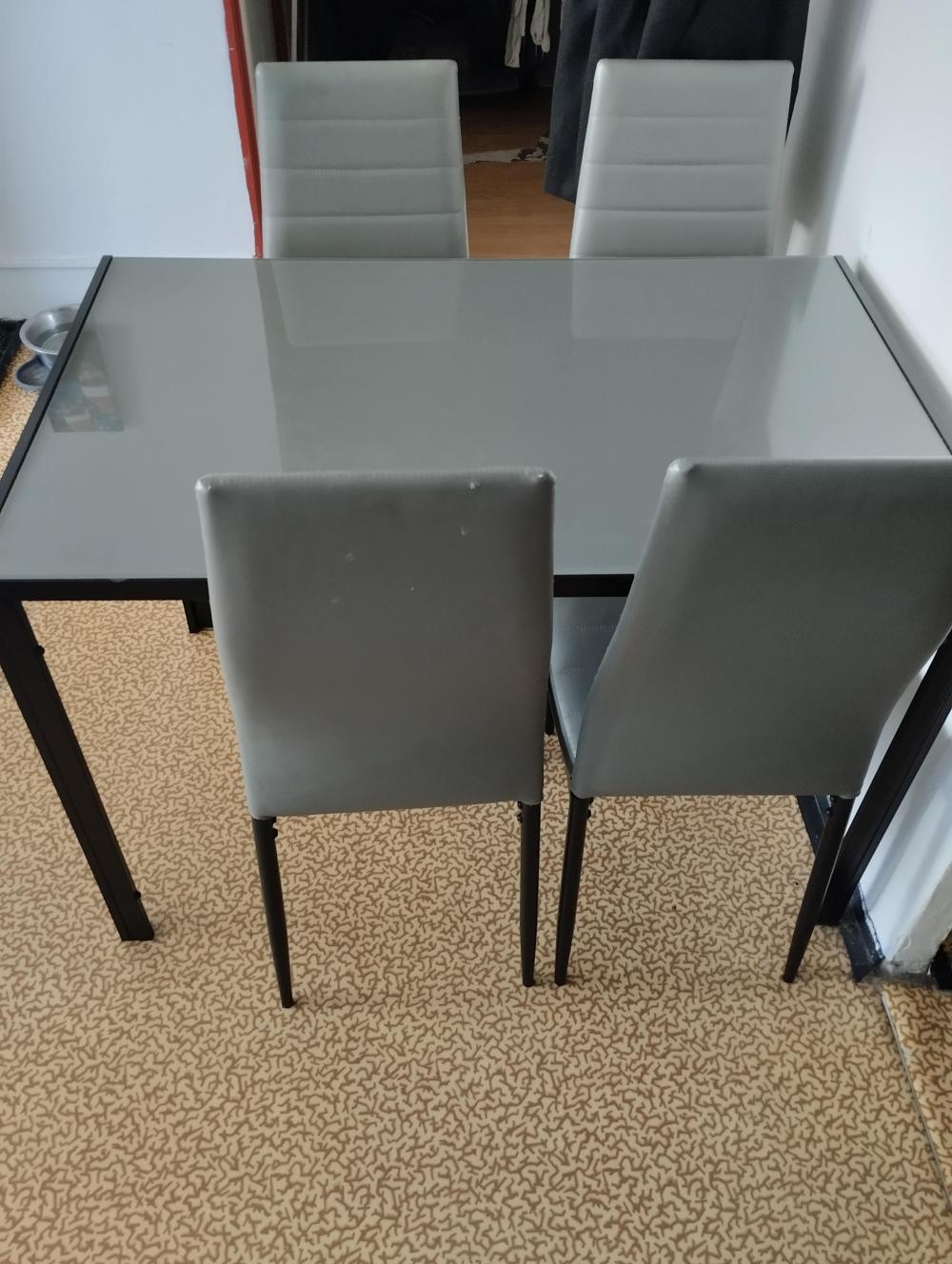 Jídelní stůl a 4 židle a jedna je ze zadu trošku poškrábaná