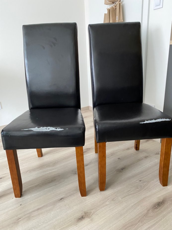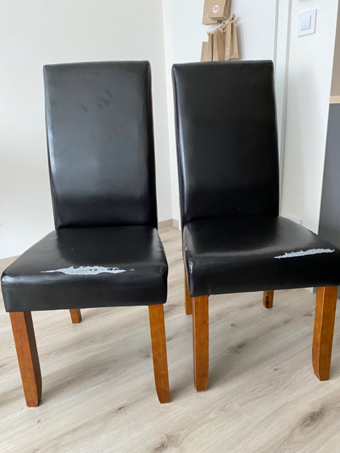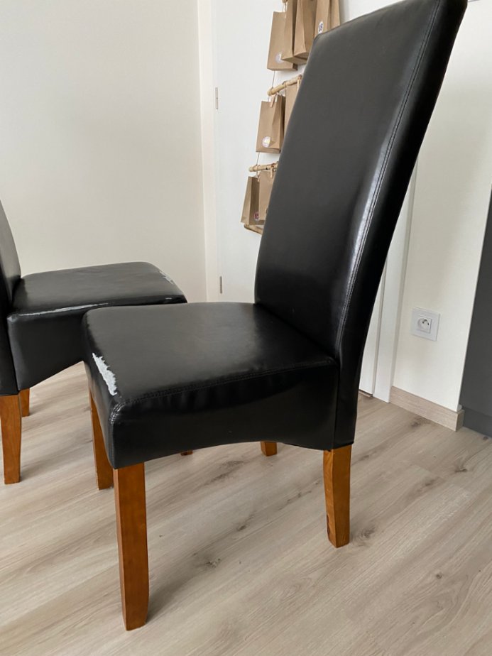 Dobrý den, nabízím k prodeji 2ks jídelní židle Bakkely, hnědá, černé čalounění. Židle má zjevné vady na sedadle v podobě , , vysypané, , koženky a vrypy na opěradle, viz přiložené fotografie. Konstrukce židle je v pořádku. Konstrukce je z masivní borovice, pěnová výplň, koženka, lakované ošetření. Rozměry po složení > šířka: 47 cm, Výška: 107 cm, Hloubka: 62 cm. Výška sedadla 48cm, Hloubka sedadla 44cm, Testované do 110 kg. Je možno vidět osobně, P-4, Záběhlice.