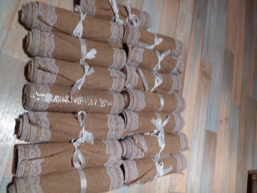 Prodám 14ks jutových běhounů na svatební stoly. Koupila jsem je nové a jsou jednou použité. Jsou čisté a nepoškozené. 100, -Kč za 1ks.