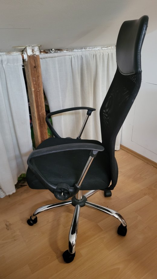Otočnou židli polohovatelnou, černá, nosnost 120kg. 500 Kč.