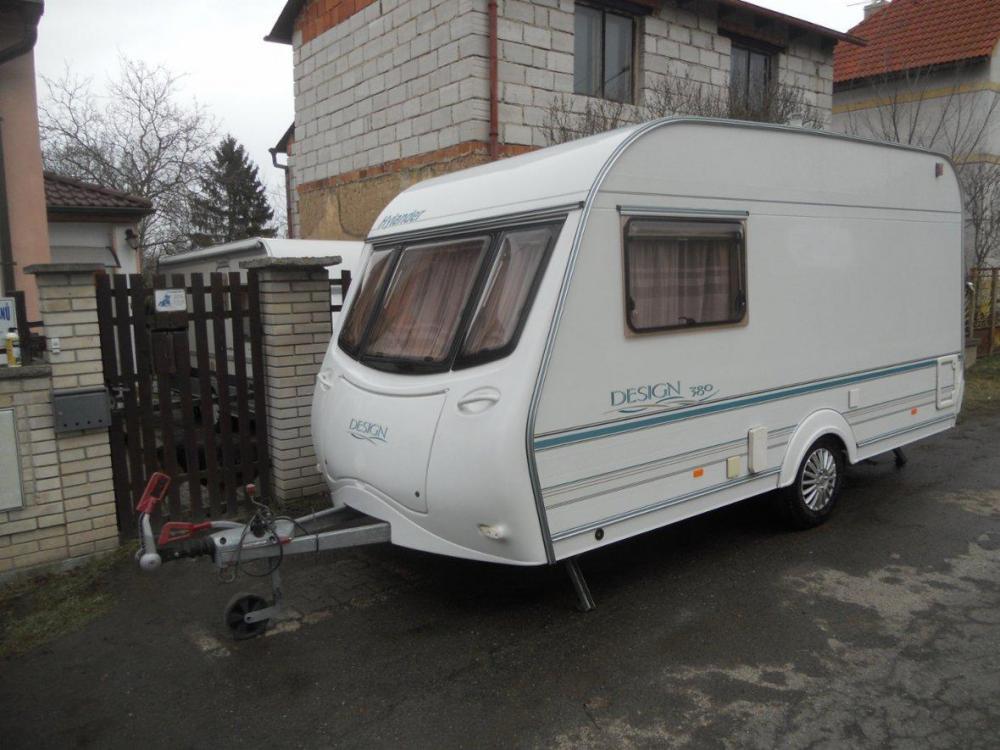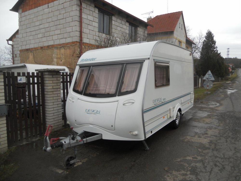 Hylander design r.v. 2001, al-ko náprava se stabilizátorem, celouzavíratelný předstan, plynový bojler, plynové topení trumatic s rozfukem, tříplotýnkový sporák, ledninice s mrazákem, velké rozložitelné sezení, kabinka s kazetovám wc., velké střešní okno, dovoz z NL, po dovozové tk., celková váha je 1200kg.,