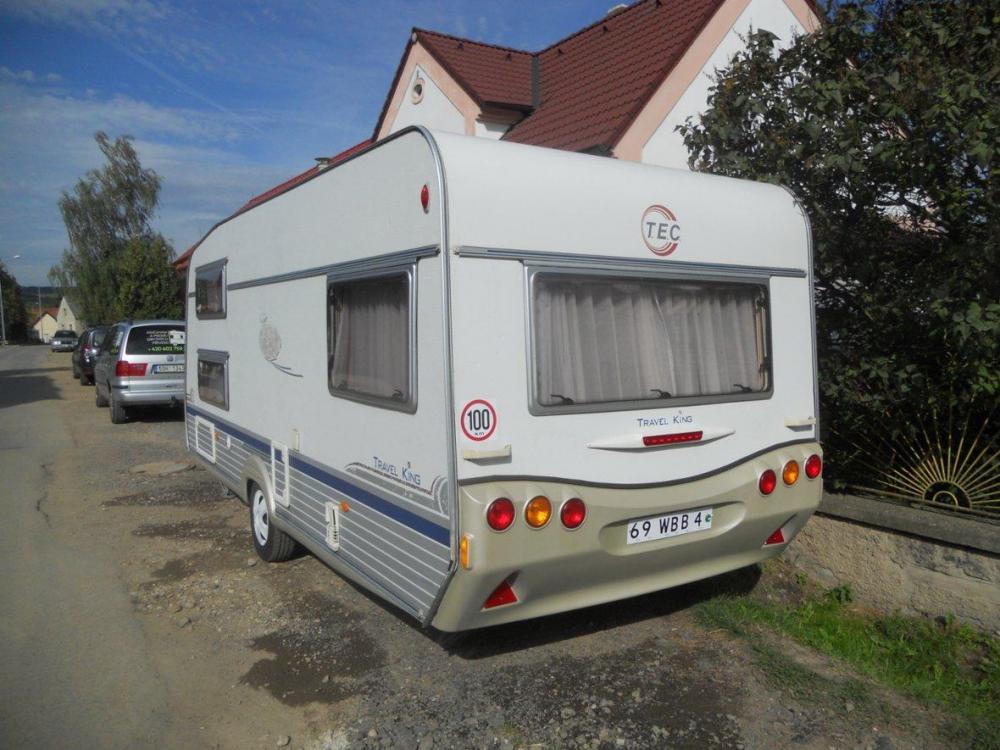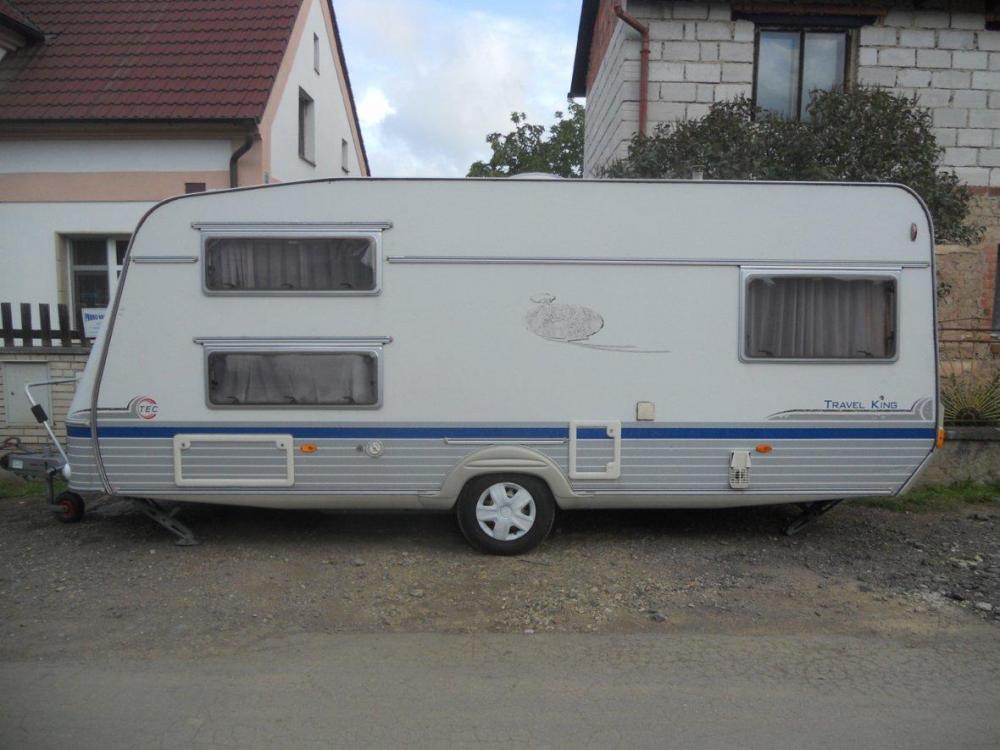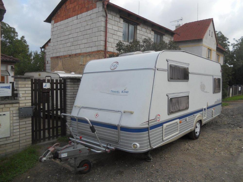 Tec Travel King r.v.2004, al-ko náprava se stabilizátoren, držák na kola, sáčková markýza, palandy a další dvoje rozložitelné sezení, koupelna s kazetovým wc a sprchou, plynový bojler, plynové topeni s rozfukem, baterie, velké střešní heki okno, nové pneu, lednice s mrazákem, mikrovlná trouba, celk. váha je 1400kg., po dovozové TK Dovoz z NL.,