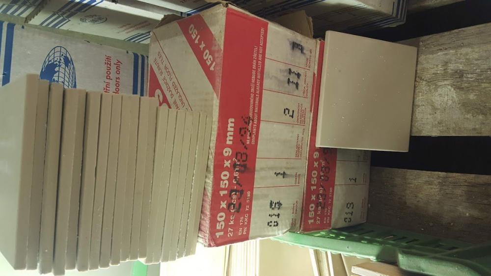 Keramické neglazované dlaždice slinuté 150x150x9mm světlá cca 1, 67m2 (2 balíky plus 20 kusů dlaždic), keramická dlažba, Kralupy.