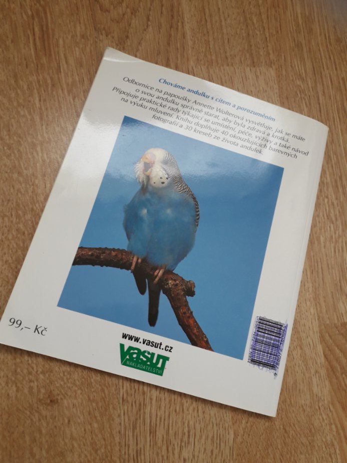 Prodám skvělou knihu (ne)jen pro začínající chovatele andulek. Kniha obsahuje cenné rady doplněné bohatými ilustracemi a fotografiemi. Cena 30 Kč.