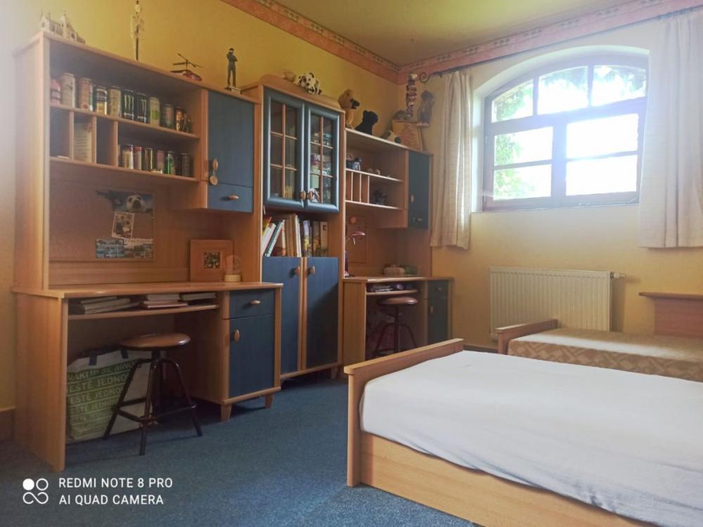 Kompletní nábytek do dětského pokoje. Děti odrostly, takže prodáváme dětský nábytek ve velmi dobrém stavu - 2x postel s úložným prostorem, 2x noční stolek, 2x psací stůl s nástavbou, 2x skříň, 1x prádelník. 1x knihovna prosklená, 1x knihovna zavírací. Dopravím na místo v rámci středních, jižních a západních Čech. Ostatní oblasti s příplatkem.