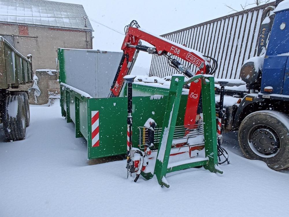 Prodám nepoužitý kontejner Abroll s hydraulickou rukou, hydraulická ruka, kleště s rotátorema drapák na sypké hmoty je rozměry ložné plochy kontejneru jsou d. 4500 x š. 2400 x v.b. 1000/1000mm. Cena 275.000 Kč. Výška háku je abroll 1.570mm.
